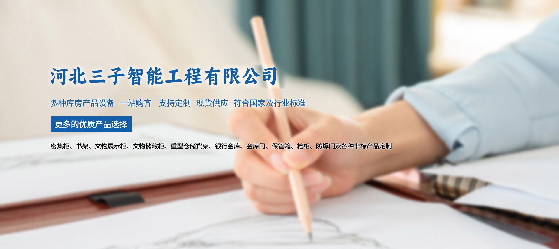 河北三子智能工程有限公司主營密集柜、書架、文物展示柜、文物儲藏柜、重型倉儲貨架、銀行金庫、金庫門、保管箱、槍柜、防爆門及各種非標(biāo)產(chǎn)品定制。我們集研發(fā),設(shè)計(jì),生產(chǎn),銷售和服務(wù)于一體,擁有國內(nèi)先進(jìn)的設(shè)備和專業(yè)的制作團(tuán)隊(duì),我們秉承踏實(shí),創(chuàng)新,責(zé)任的企業(yè)精神服務(wù)于檔案存儲,倉儲物流,農(nóng)業(yè)部,博物館,美術(shù)館,銀行,部隊(duì),學(xué)校等多個(gè)領(lǐng)域,我們始終堅(jiān)持用戶至上和精益求精為客戶提供優(yōu)質(zhì)的產(chǎn)品及服務(wù)。